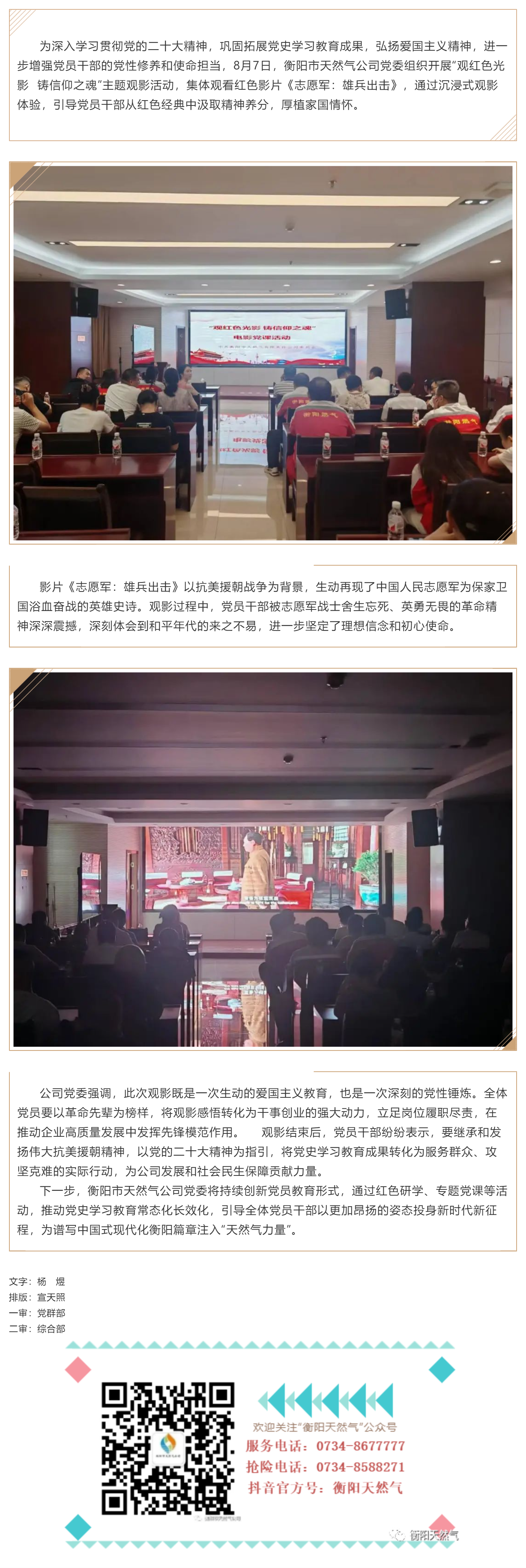 衡陽(yáng)市天然氣公司黨委組織觀看紅色電影《志愿軍:雄兵出擊》 以光影鑄魂激發(fā)奮進(jìn)力量